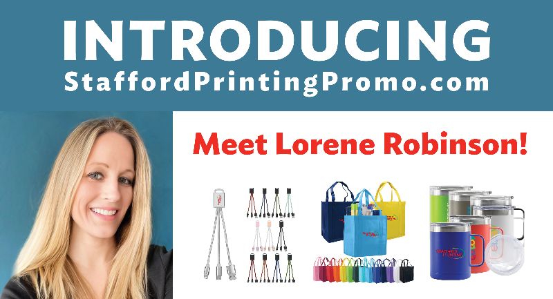 With thousands of selections to choose from, Stafford Printing Promo offers branded merchandise to fulfill all your needs. Stafford Printing Promotions Coordinator Lorene Robinson can assist you in finding just the right products to help your business stay in front of your clients and working-from-home employees.
